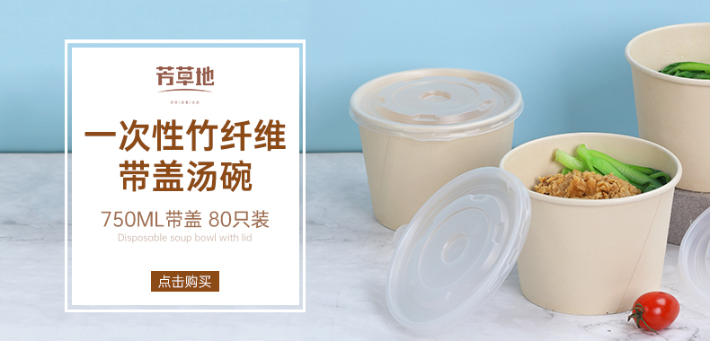 一次性用品 竹纤维带盖汤碗750ml